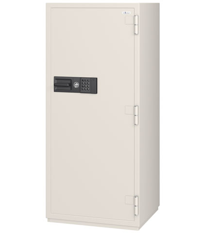 暗証番号をテンキーで入力するタイプ。電池が切れたら空かなくなりますが、電池の交換は金庫の外側でできるので金庫を開けなくても可能です。店舗・一般事務所など金庫を扱う担当者が変わる場合は、都度、暗証番号を変えれば済むとのことで好評。電話番号や誕生日等のわかりやすい暗証番号は使わないように。