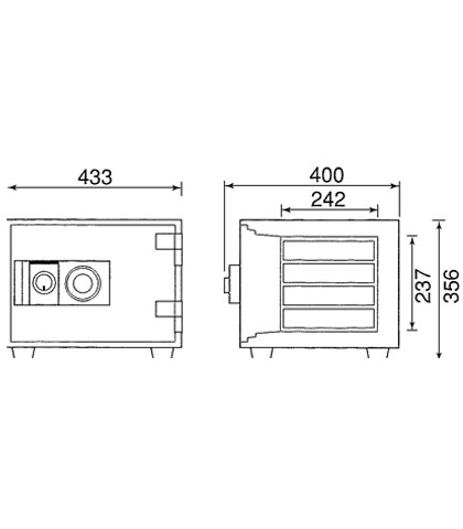 暗証番号をテンキーで入力するタイプ。電池が切れたら空かなくなりますが、電池の交換は金庫の外側でできるので金庫を開けなくても可能です。店舗・一般事務所など金庫を扱う担当者が変わる場合は、都度、暗証番号を変えれば済むとのことで好評。電話番号や誕生日等のわかりやすい暗証番号は使わないように。
