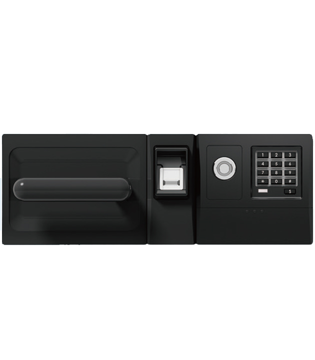 暗証番号をテンキーで入力するタイプ。電池が切れたら空かなくなりますが、電池の交換は金庫の外側でできるので金庫を開けなくても可能です。店舗・一般事務所など金庫を扱う担当者が変わる場合は、都度、暗証番号を変えれば済むとのことで好評。電話番号や誕生日等のわかりやすい暗証番号は使わないように。